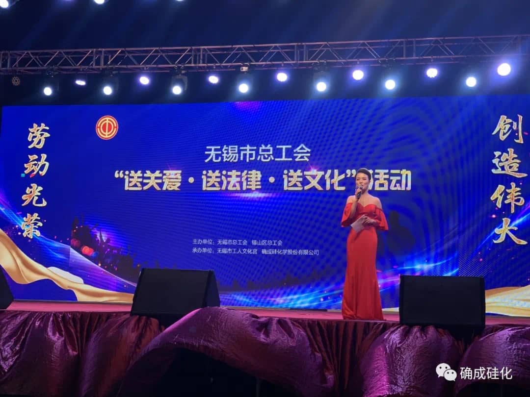 9月27日晚,由無錫市總工會、錫山區(qū)總工會、東港鎮(zhèn)總工會聯(lián)合主辦,無錫市工人文化宮、確成硅化學(xué)股份有限公司承辦的“送關(guān)愛·送法律·送文化”主題文藝晚會在確成草坪廣場成功舉辦。