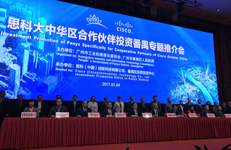 1月4日,廣州市工業(yè)和信息化委員會、番禺區(qū)政府在長隆國際會展中心舉辦“思科大中華區(qū)合作伙伴投資番禺”專題推介會。番禺區(qū)向思科全球合作伙伴宣傳番禺區(qū)投資環(huán)境,共同打造經濟體量達千億級的思科(廣州)智慧城。推介會上,天津安捷物聯(lián)等10余家合作伙伴簽訂合作意向書。2016年,安捷物聯(lián)與思科合作,共同打造在廣州番禺區(qū)落戶的國際創(chuàng)新城思科(廣州)智慧城項目。在未來數(shù)年,將在互聯(lián)網+智能制造、智慧城市等領域打造一個在中國和世界都叫得響的樣板創(chuàng)新項目。