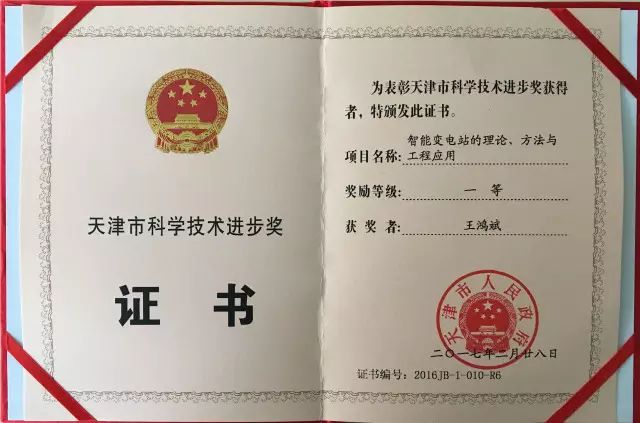 近日,天津市召開2016年度科學(xué)技術(shù)獎勵大會,本市共有189個項(xiàng)目獲獎。其中,一等獎23項(xiàng)、二等獎57項(xiàng)、三等獎109項(xiàng),涵蓋了自然科學(xué)獎、技術(shù)發(fā)明獎和科技進(jìn)步獎等多個種類。由我公司申報(bào)的《智能變電站的理論、方法與工程應(yīng)用》項(xiàng)目榮獲天津市科學(xué)技術(shù)進(jìn)步一等獎,董事長劉柏呈、創(chuàng)新中心副總經(jīng)理王鴻斌分別榮獲天津市科學(xué)技術(shù)進(jìn)步個人一等獎。