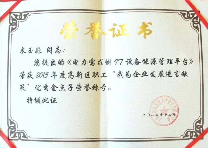 表彰大會(huì)上,安捷電力副總經(jīng)理覃嶺從天津大學(xué)校領(lǐng)導(dǎo)張力新手中接過(guò)“優(yōu)秀社會(huì)服務(wù)集體”的獎(jiǎng)牌。這份榮譽(yù)不僅是天津大學(xué)對(duì)于安捷電力優(yōu)秀服務(wù)質(zhì)量的高度肯定,更是集團(tuán)在2015年繼“濱海新區(qū)科學(xué)技術(shù)進(jìn)步一等獎(jiǎng)、天津市科學(xué)技術(shù)進(jìn)步二等獎(jiǎng)”之后收獲的又一項(xiàng)殊榮。在安捷的榮譽(yù)墻上,現(xiàn)已大大小小掛滿(mǎn)了近二十種集團(tuán)榮譽(yù):最佳雇主獎(jiǎng)、先進(jìn)基層黨組織、高新技術(shù)企業(yè)、天津市認(rèn)定企業(yè)技術(shù)中心,天津市專(zhuān)利試點(diǎn)企業(yè)、院士專(zhuān)家工作站、天津大學(xué)電力新技術(shù)研究開(kāi)發(fā)實(shí)驗(yàn)室、華北電力大學(xué)研究生工作站。安捷與中科院、天津大學(xué)、華北電力大學(xué)等單位和高校開(kāi)展產(chǎn)學(xué)研合作,并與倪光南院士成立了院士專(zhuān)家工作站,共同助力創(chuàng)新發(fā)展。更加值得欣喜的是,在年末之際,由海諧集團(tuán)副總經(jīng)理米玉淼和海諧集團(tuán)創(chuàng)新中心副主任王立波分別提出的《電力需求側(cè)IT設(shè)備能源管理平臺(tái)》和《智能暖通空調(diào)自控管理平臺(tái)》更是榮獲了2015年度高新區(qū)職工“我為企業(yè)發(fā)展進(jìn)言獻(xiàn)策”最佳金點(diǎn)子榮譽(yù)稱(chēng)號(hào)。
